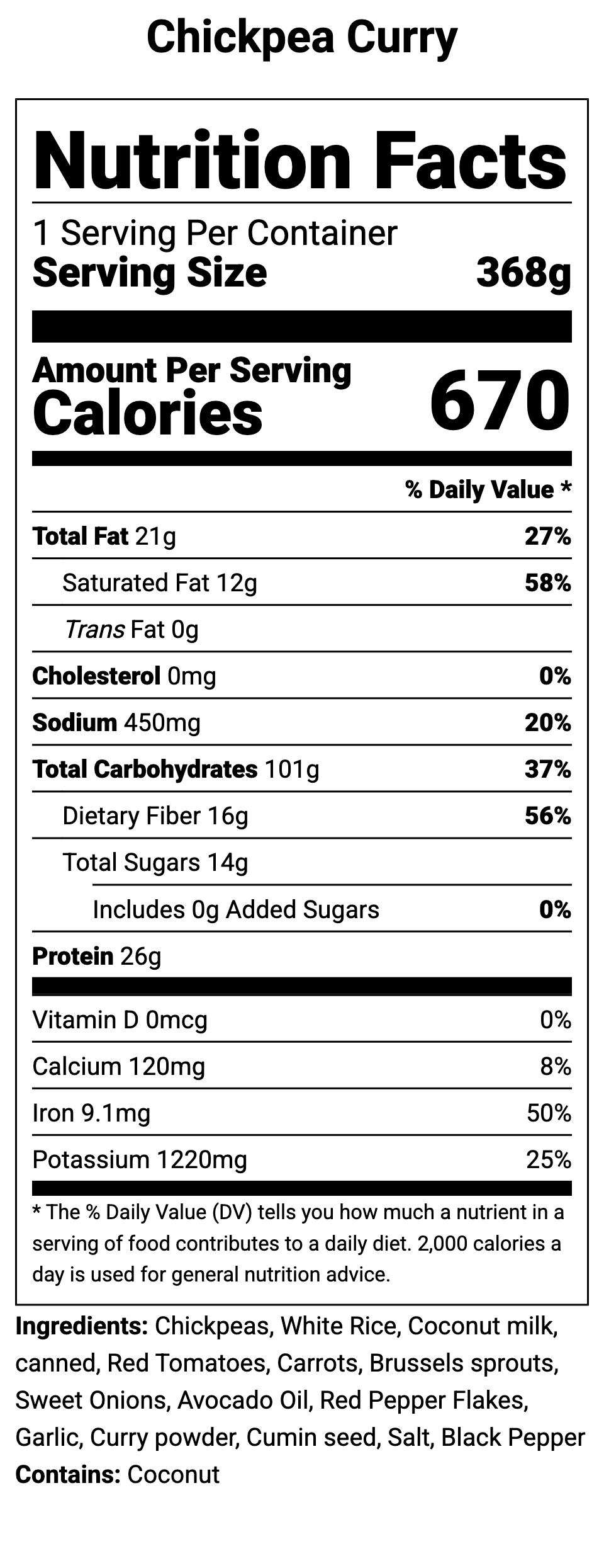 An incredible vegan curry with Indian spices, chickpeas, cilantro rice and roasted carrots and Brussels sprouts.