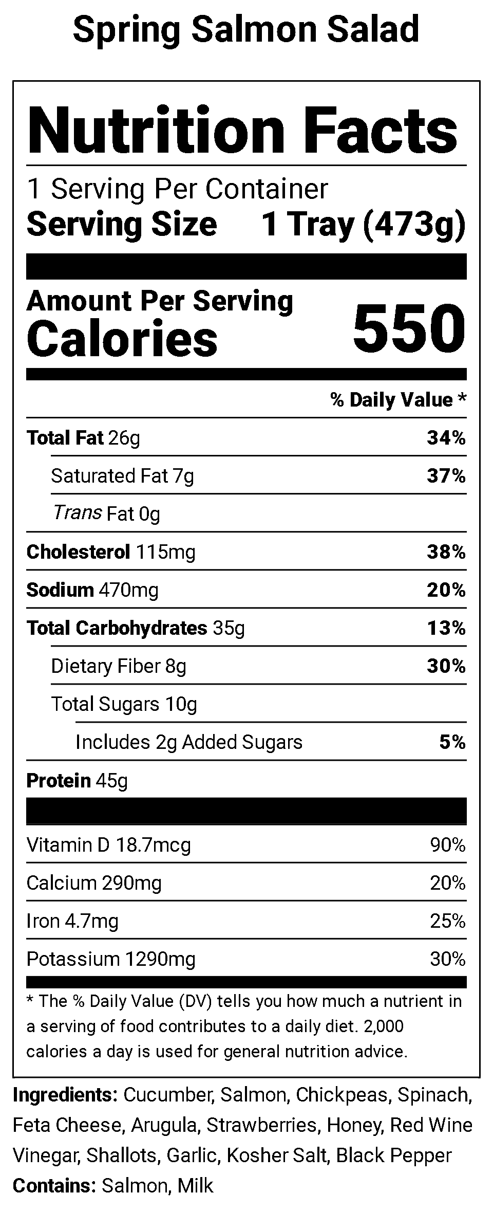 A festive spring salad with arugula, chickpeas, strawberry slices, and Persian cucumbers, topped with feta cheese.